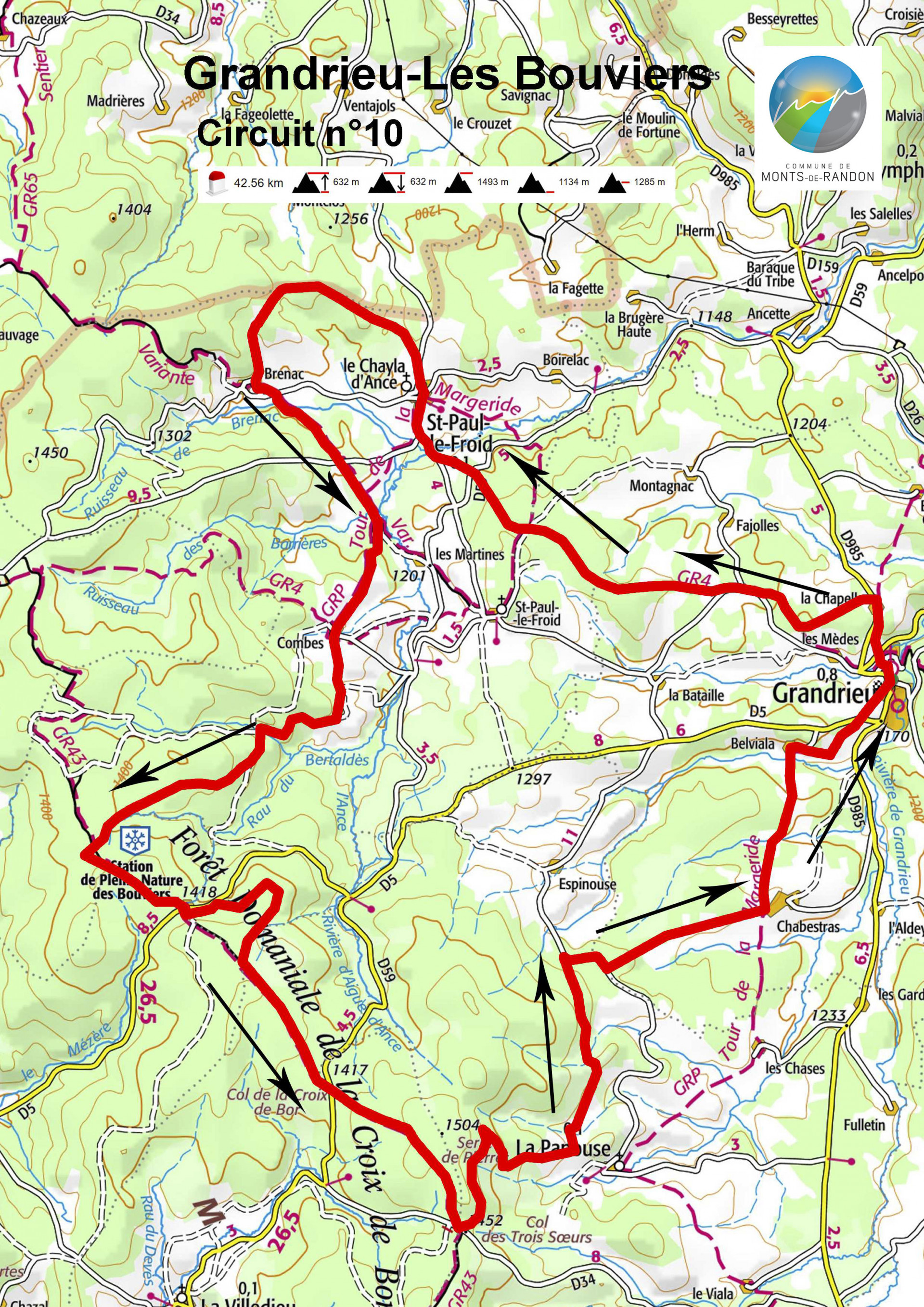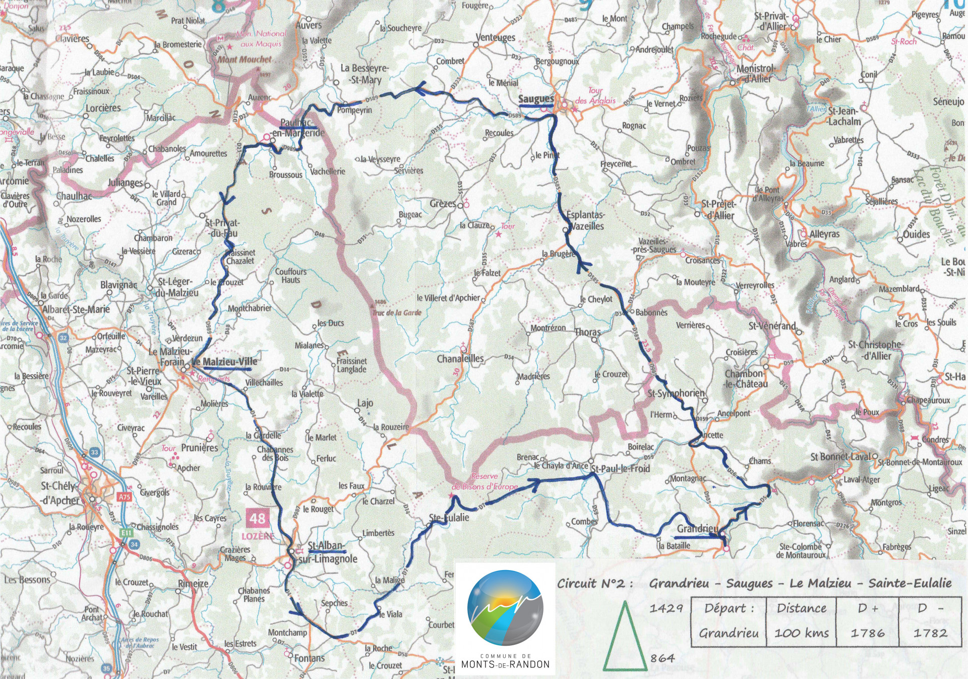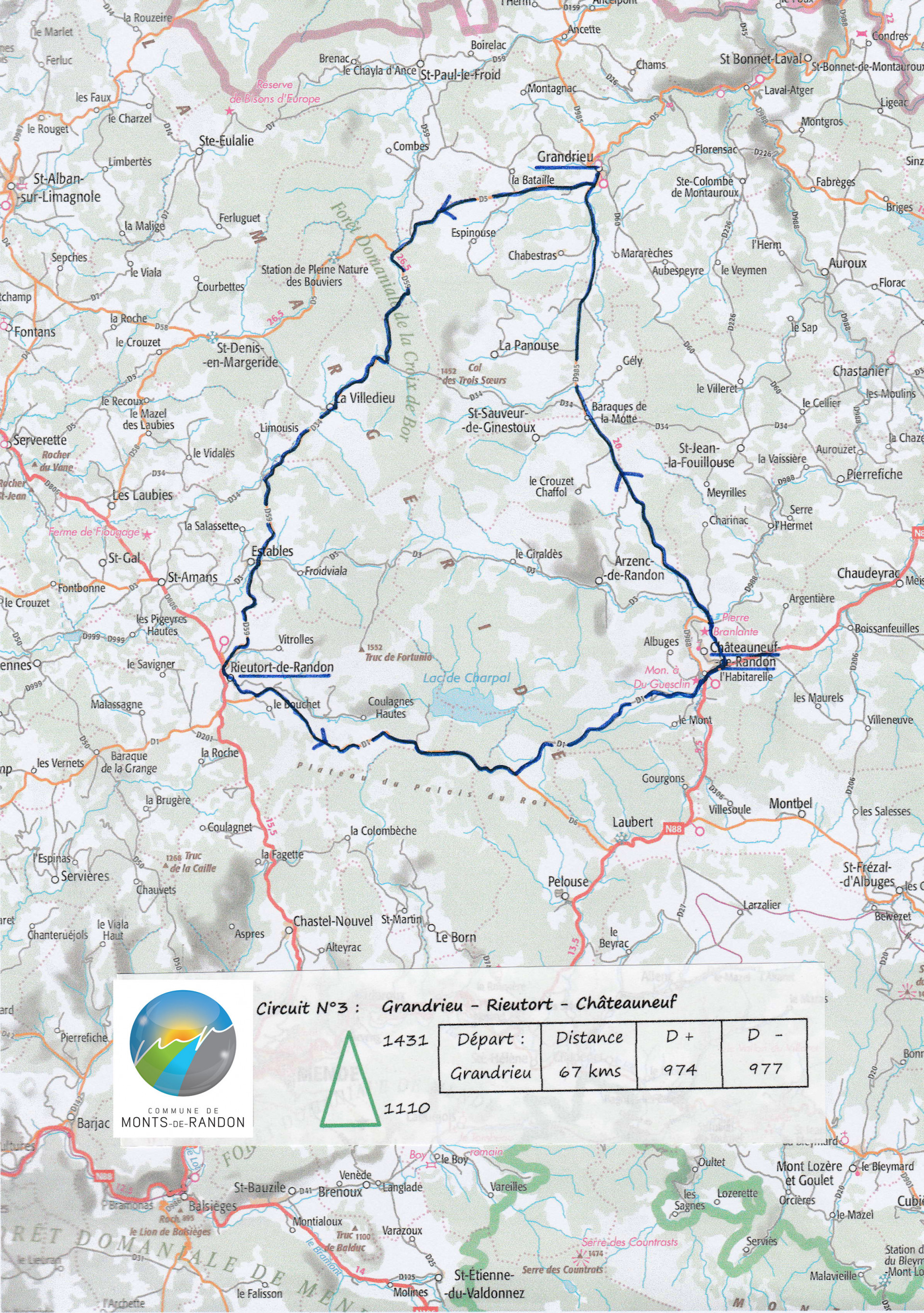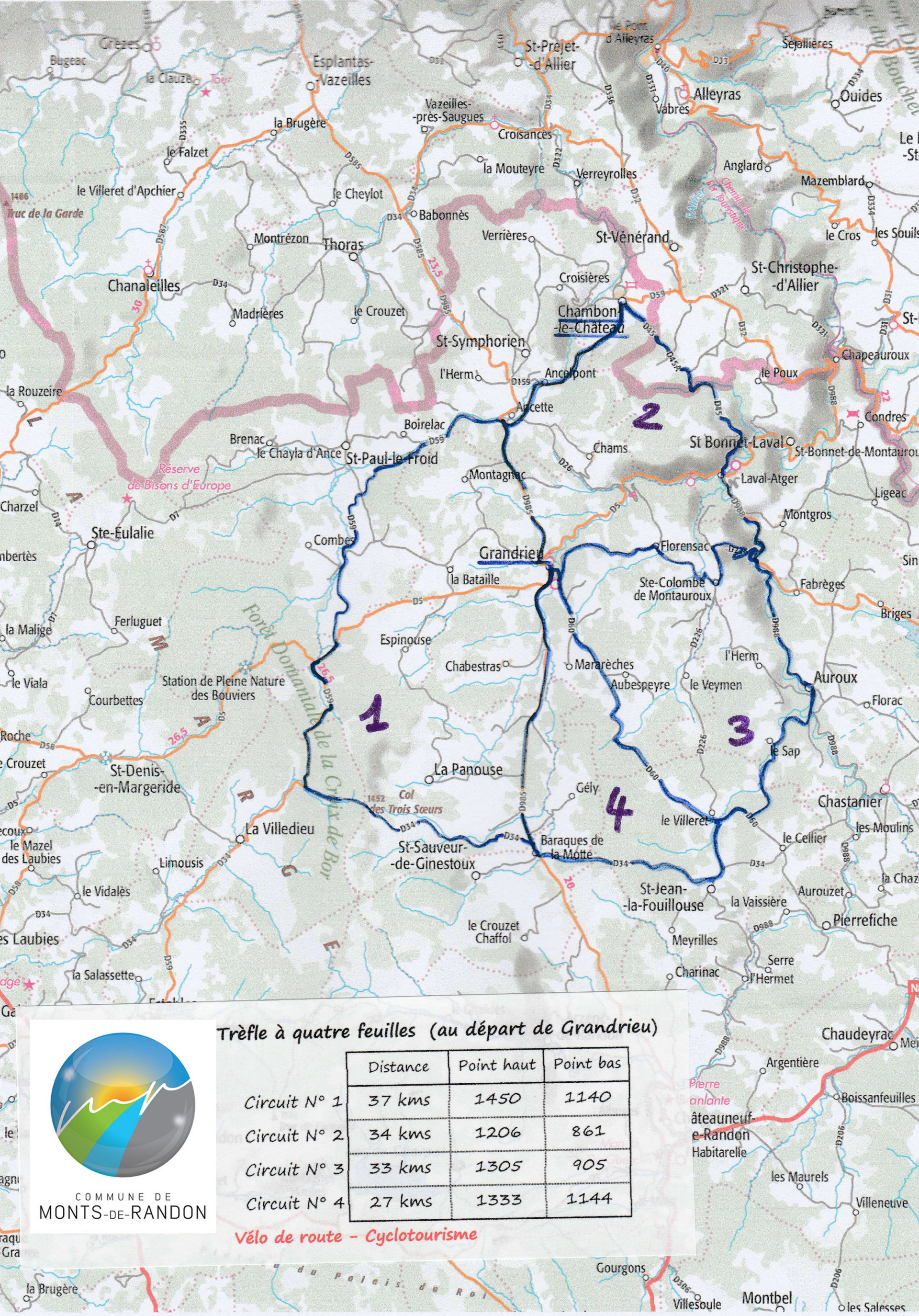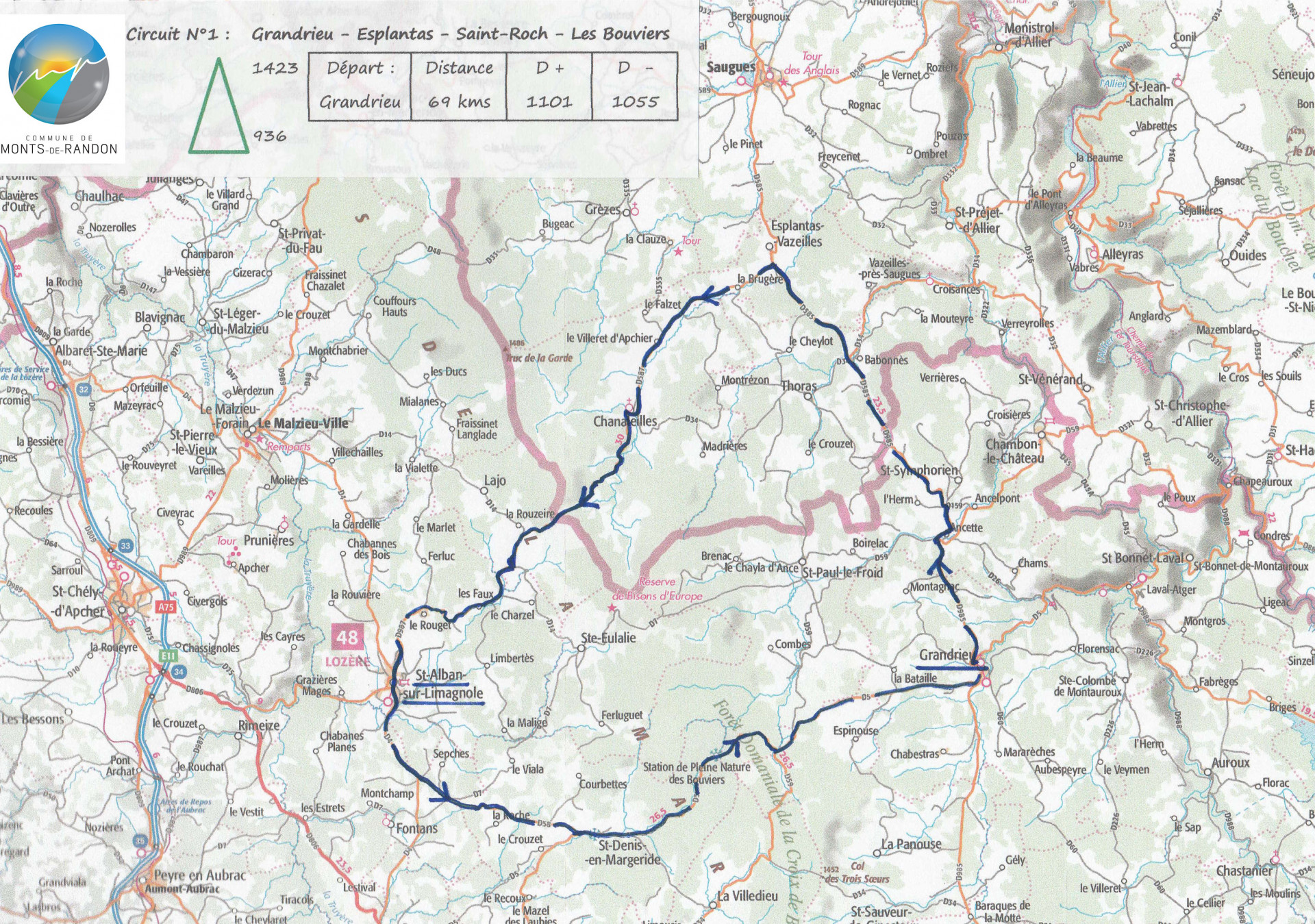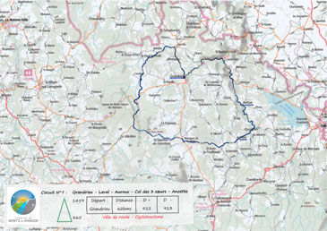 Circuit N°1 - Grandrieu Esplantas Les Bouviers - 69 km | Circuit N°2 - Grandrieu Saugues Ste Eulalie - 100 km | Circuit N°3 - Grandrieu Rieutort Châteauneuf - 67 km |