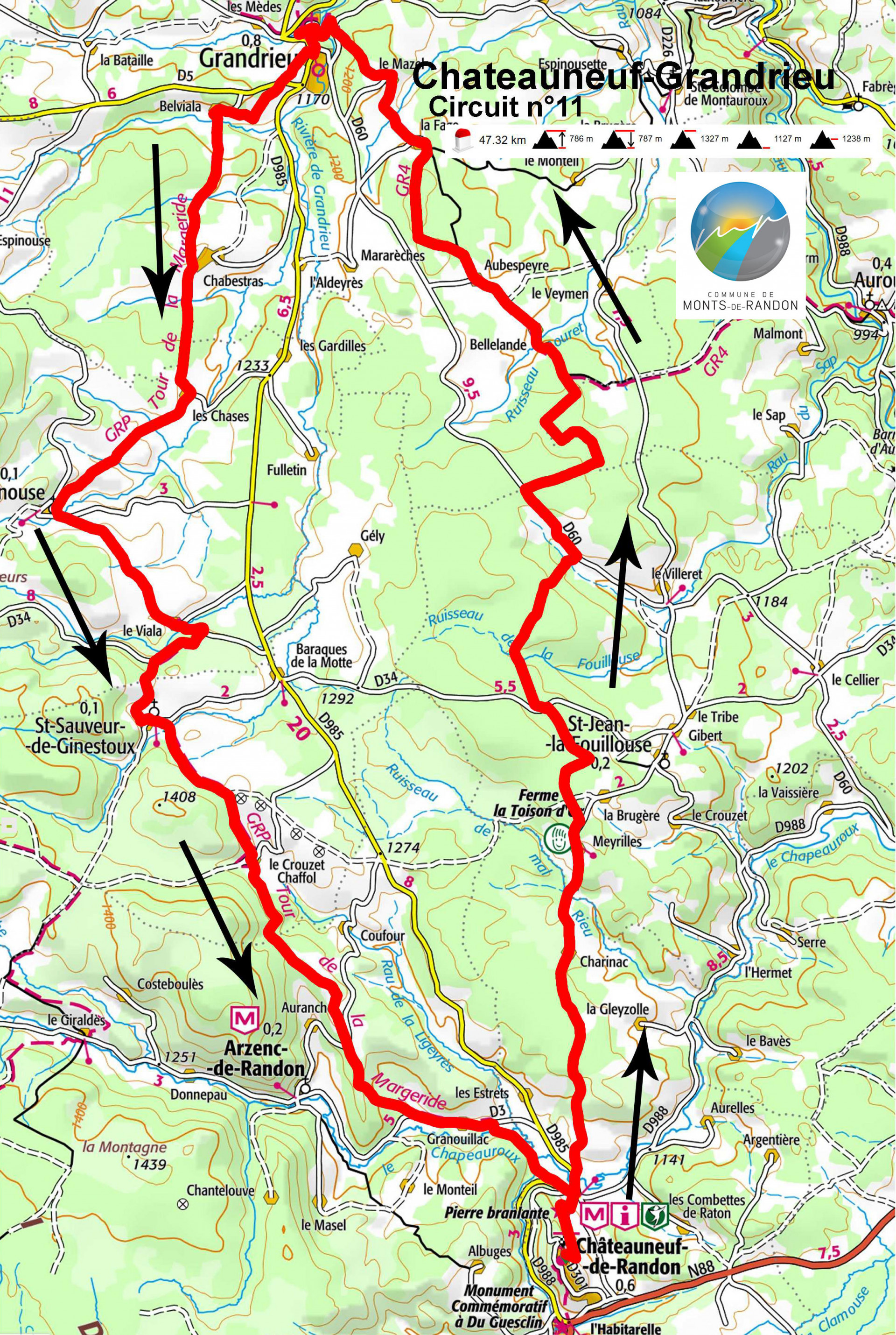 Circuit N°10 - Grandrieu Les Bouviers - 42.56 km | Circuit N°11 - Châteauneuf Grandrieu - 47.32 km | Circuit N°19 - Mararèches - 10.23 km |
