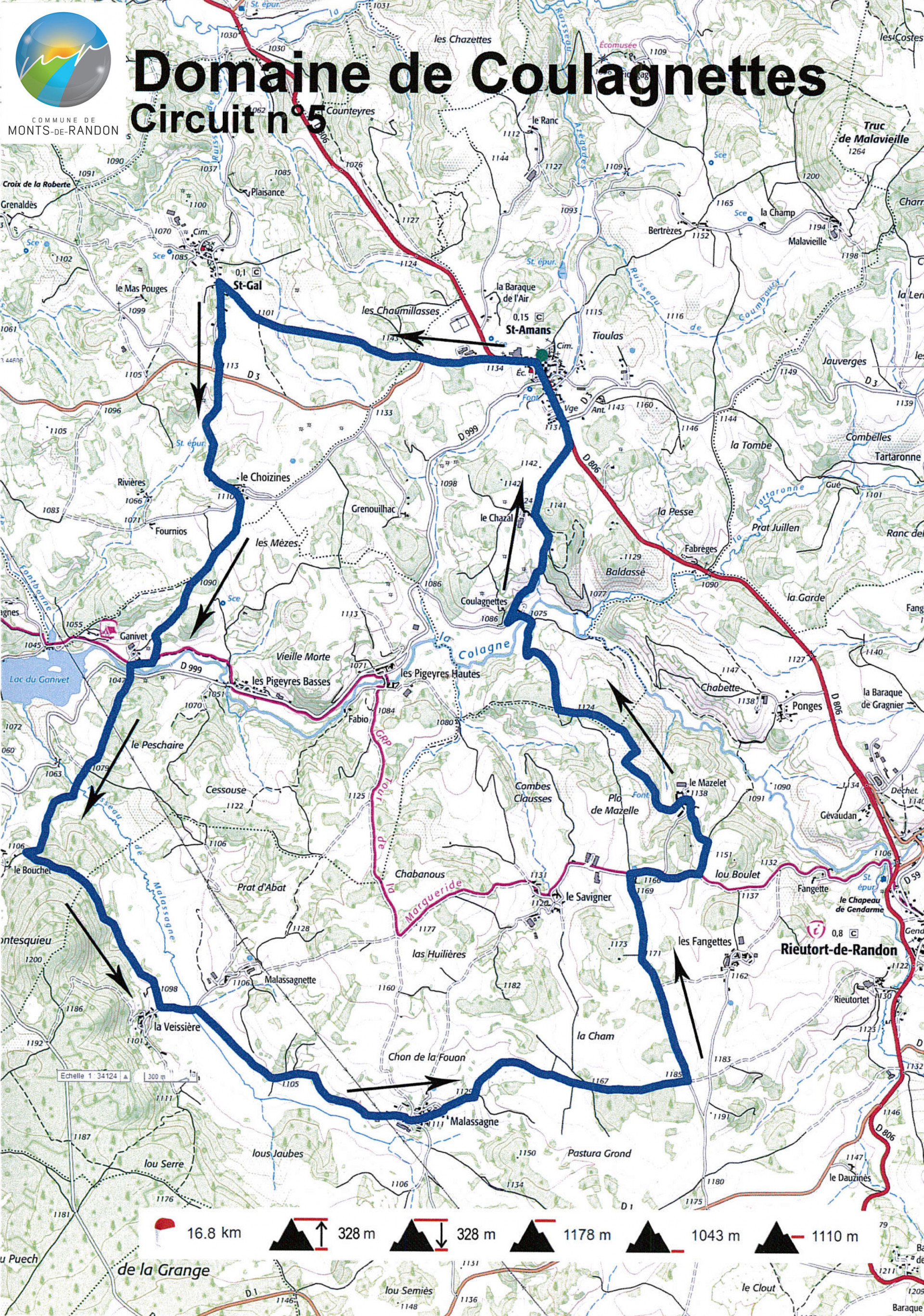 Circuit N°4 - Tour de Charpal - St Féréol - 34 km | Circuit N°5 - Domaine de Coulagnettes - 16.8 km | Circuit N°6 - Tour de Fortunio - 20.65 km |